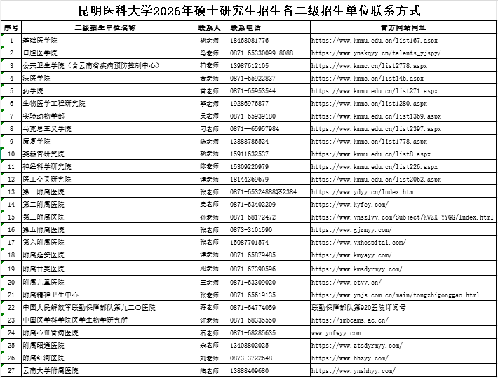 学校根据《昆明医科大学2026年硕士研究生招生考试复试录取工作办法》开展调剂复试工作,复试采取差额复试。具体工作由各二级招生单位组织,各专业复试时间、地点由各二级招生单位在本单位官网公布或电话告知,请考生注意查看各二级招生单位官网发布的相关信息,保持通讯畅通,按二级单位要求参加现场审查及复试。